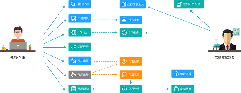 1)提供一個統一的服務平臺,將分散在各學院的實驗室、儀器和人員信息進行匯總,支持在線進行信息核查、授權等管理工作;