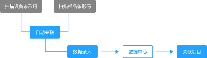 b、在連接不帶工作站但具有數據接口的設備時,將接口轉換器連接設備的數據接口,儀器的測試結果就會通過數據接口轉換器自動采集到操作端,再掃描樣品的條形碼,操作者即可將樣品與設備數據進行關聯。數據自動上傳到服務中心,與實驗項目進行關聯。