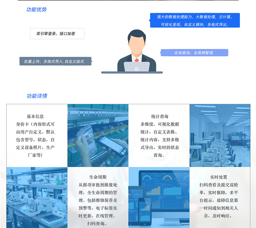 12、支持用戶查看設(shè)備的整個生命周期,從設(shè)備的采購,維護(hù)、維修、校準(zhǔn)、報廢所有節(jié)點的數(shù)據(jù)。