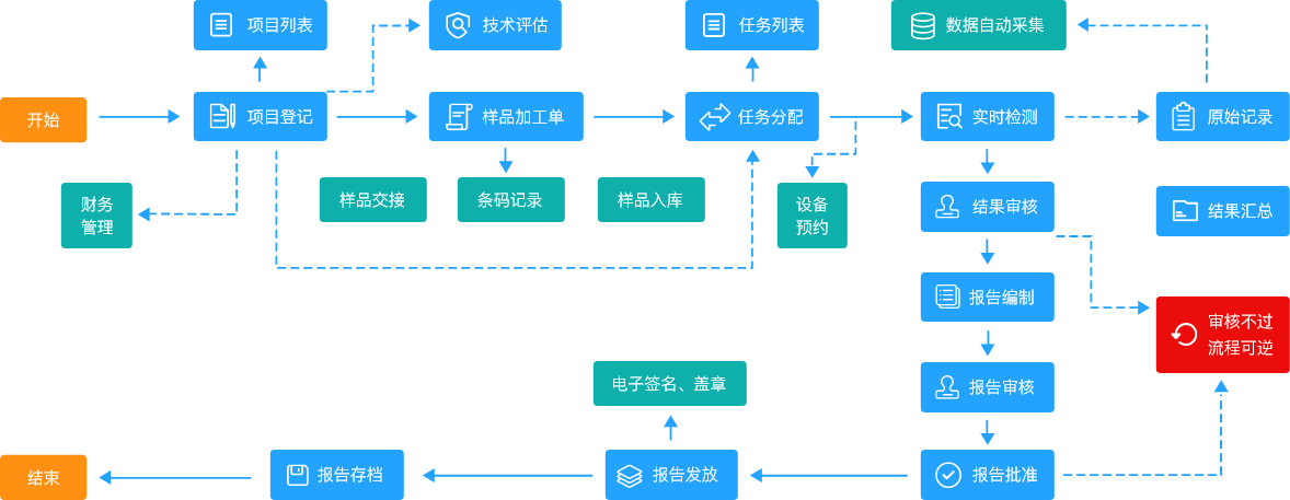實驗室信息管理系統(LIMS)是實驗室人(人員)、機(儀器)、料(樣品、材料)、法(方法、標準、質量)、環(環境)全面資源管理的實驗室信息化管理系統,是一套完整的檢驗綜合管理和產品質量監控體系,在滿足日常管理要求,保證檢驗分析數據的嚴格管理和控制。它能全面優化實驗室的檢驗管理工作,顯著提升實驗室的工作效率和生產力,提高質量控制水平。應用場景
