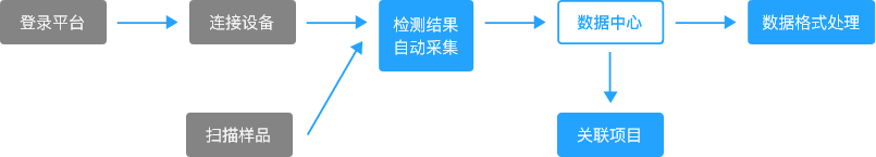 對于有工作站的設備,首先登陸數據采集系統,第一次連接設備需對設備進行配置連接(管理員進行配置),配置成功后,檢測結果數據就會實現自動采集,并上傳到數據中心,保證了實驗數據的原始性。